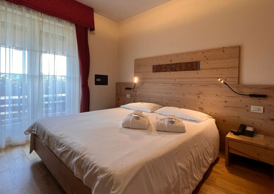La Camera Comfort dell’hotel Paradiso di Asiago è una tipologia di camera completamente nuova, dall’arredamento tipico di montagna in legno massiccio. Dotata di tutti i comfort, è una camera con letto matrimoniale e possibilità di aggiungere letti per bambini.